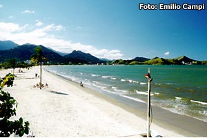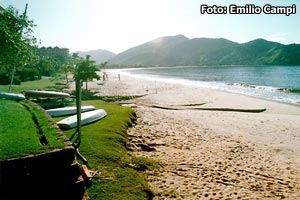 Praias ao Norte. Brava: 200m; praia de tombo ainda selvagem em formato de concha, boa para surfe; encosta recoberta pela mata atlântica; acessopela Praia Martim de Sá ou por estrada precária à margem esquerda do Rio Guaxinduba. |